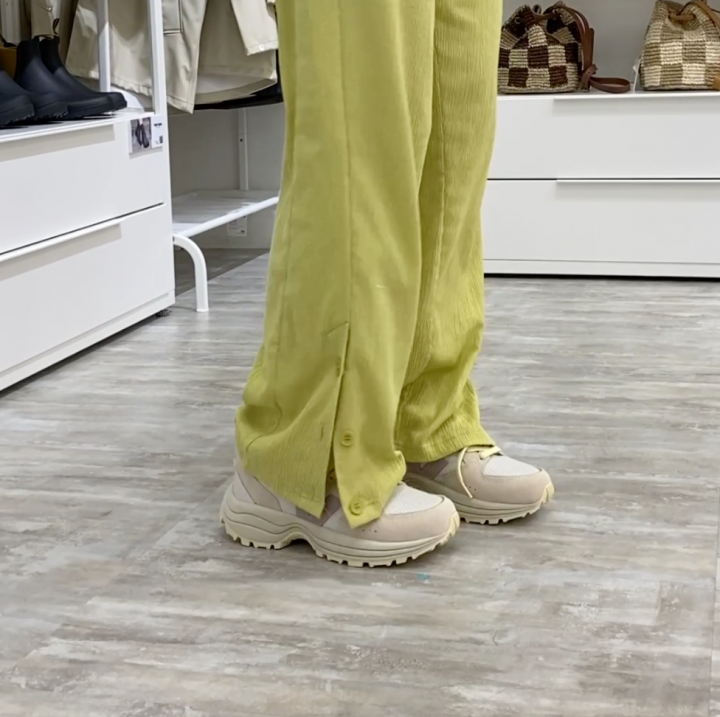 顯瘦、拉長腿型絕對是穿搭的重要關鍵,老爹鞋能在視覺上展現非常好的增高作用,如果覺得自己身材偏向嬌小的話,那麼 VENTURI 老爹鞋勢必是不能錯過的選項。VENTURI 老爹鞋本身的外型已經非常搶眼,帶有比較強的運動感,在穿搭上可以稍微簡約一些,搭配同色系的寬鬆大Tee、寬鬆褲型或裙款,就能瞬間打造最時髦的「Athlesisure 運動休閒風」。